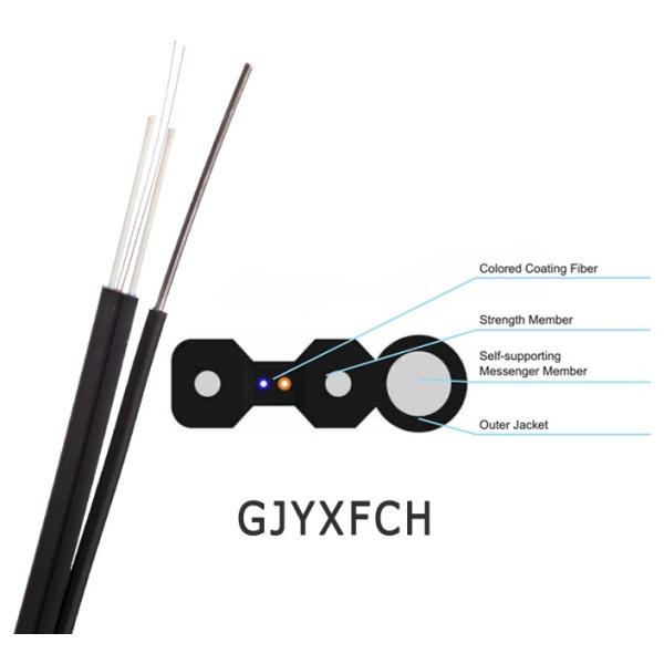 FTTH Fiber Optic Drop Cable , GJYXCH Outdoor Optical Fiber Cable Black Color