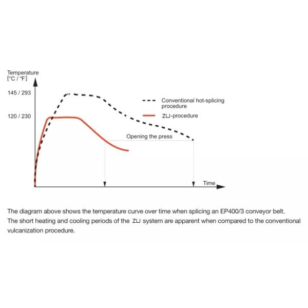 Our ZLJ series rubber conveyor belt splicing vulcanizing machine has fast heating speed and cooling speed (Heating to 180℃, about 15~20 min; 180℃ cooling down to 60℃ needs about 3~5min according to different size press), which will save a lot of time for splicing process. For heating, we used rubber coated resistance heating wire, which has faster heating speed and lower electric leakage risk.