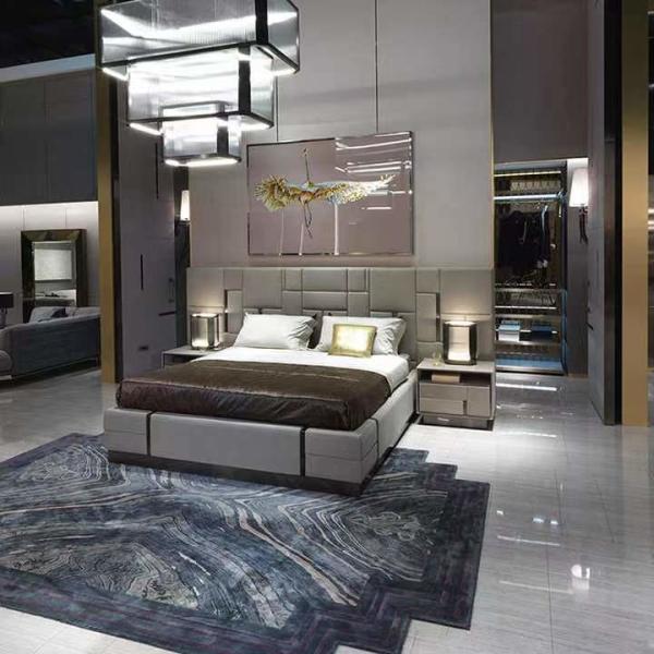High End Luxury Genuine Leather King Size Bed Frame Hotel Bed Furniture Titanium Brushed Stainless Steel Leather Beds